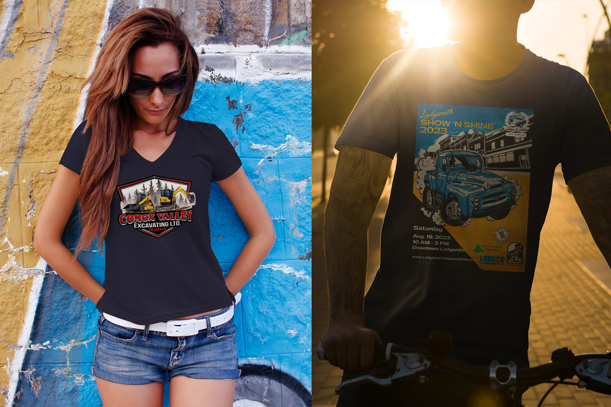 An affordable way to advertise a business or event. It’s also an inexpensive way to supply staff or volunteers with T Shirts with your logo or design. These quality screenprinted garments are ideal for Baseball or Golf Tournaments, Reunions, Camping Trips, or just for Fun!